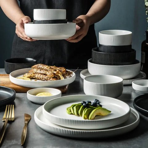 Jinbaichuan 도매 도자기 접시 화이트 블랙 세라믹 식기 웨딩 호텔 레스토랑